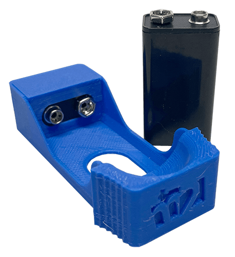 Der Batterieclip kommt bei allen aktiven Systemen zum Einsatz und sorgt für die mobile Stromversorgung des Magnetfeldgenerators.