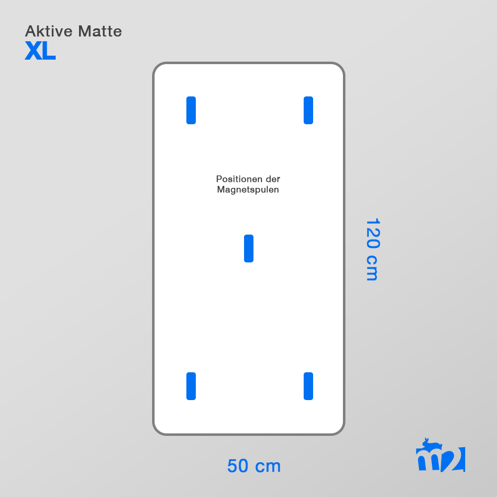 Die große "Aktive Matte XL" ist technisch mit der Variante M identisch, weist jedoch eine größere Fläche und mehr Spulen auf.