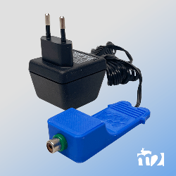 Netzteiladapter, welcher anstelle des Batterieclips in den aktiven Matten M und XL verwendet werden kann um einen stationären Einsatz ohne Batterieverbrauch zu ermöglichen.