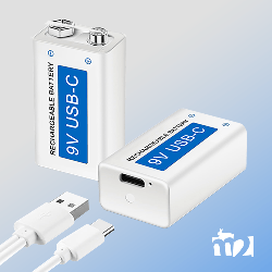 9V-Blockakku mit 5600mAH Leistung und komfortabler Lademöglichkeit über USB-C Verbindung. Entält Akku, Kabel und Ladenetzteil.